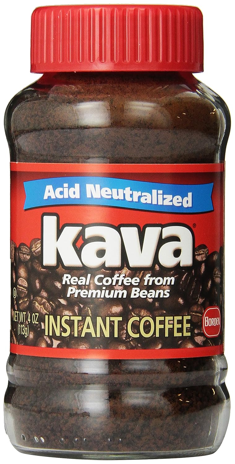 Kava Instant Coffee, 4 Ounce Glass Jar is best for youRich, Full bodied taste! Kava is made from premium coffee beans for a delicious flavor and aroma. Kava is 90% Acid Neutralized so you can enjoy a rich, full bodied taste without the bitterness. 15 times less acid than other leading brands.