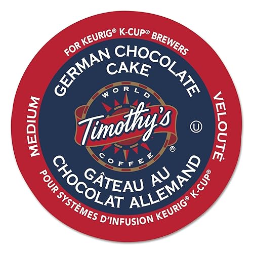 Timothy's World Coffee German Chocolate Cake K-cup for Keurig Brewers, 96 Count is best for youThis coffee is as good, or better, than the dessert it was named after! Timothy's ethical and exceptional specialty-grade coffees are sourced from the top coffee growing regions of the world and then roasted to perfection, highlighting the unique characteristics of the land in which they were grown.