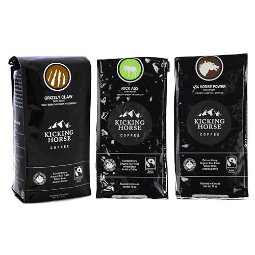 Kicking Horse Coffee Whole Bean Variety Pack (Pack of 3 Flavors) is best for youKicking Horse Coffee is Rocky Mountain-roasted; bold, smooth and adventurous, just like you. A loyal following reinforces Kicking Horse Coffee's passion for roasting only the finest, super-premium coffee. This is a no-compromise coffee and a no-compromise company, committed to local and global environmental conservation. Whichever blend you choose, you can drink ass-ured, knowing that all Kicking Horse Coffee is 100% organic and Fairtrad
