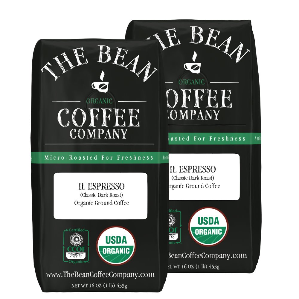 The Bean Coffee Company Il Espresso (Classic Dark Roast), Organic Ground, 16-Ounce Bags (Pack of 2) is best for youThe bean coffee company's organic premium espresso is fresh- roasted in the euro style for the best taste and crema. this dark roast classic is rich in antioxidants and has a bold, full body and a smooth finish. like all coffees from the bean coffee company, this 100% arabica organic coffee was hand roasted in small batches and packaged at the peak of its cycle to preserve its natural flavors and fresh-roasted quality. for information or customer service concerning this coffee, or any of our great single origin and blended coffees, contact the bean coffee company at customerservice@thebeancoffeecompany.com. it's all about the bean!