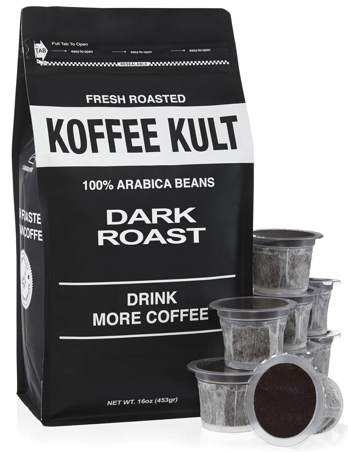 Koffee Kult Dark Roast Coffee Single Serve Capsules for Keurig K-cup Brewers 100% Arabica Coffee - Fair Trade - 10 Capsules Per Box is best for youFlavor:Dark Roast | Size:10 count Why should you have to leave the house early so you can treat yourself to a single perfectly brewed cup of dark roast coffee? With Koffee Kult Dark Roast Coffee Single Serve Capsules, you can use your Keurig Brewing System to make a cup of gourmet quality coffee right at home. Koffee Kult Dark Roast Coffee Single Serve Capsules are pre-measured coffee capsules that are compatible with Keurig K-Cups brewing systems. Inside of each capsule is the perfect amount of fresh roasted 100 percent Arabica coffee for brewing a single cup of coffee. Our gourmet flow-thru cup design ensures that every drop flows effortlessly into the cup for a delicious-tasting coffee treat that you can prepare in just minutes. Perfect for those who enjoy dark coffees with bold flavor, our Koffee Kult Dark Roast Coffee Single Serve Capsules come in boxes of 10. The Arabica coffee has a full body with a pleasant, smooth taste and bright finish that continues to treat the palate continuously after each sip is savored. A hint of cinnamon adds to the flavor and aroma of this delectable gourmet coffee, which is perfect for breakfast, an afternoon pick-me-up or for serving with dessert. Koffee Kult Dark Roast Coffee Single Serve Capsules are a product you can truly feel good about using. Our coffee is grown using environmentally responsible methods and is organically sourced and acquired through fair trade practices. Featuring 95 percent recycled materials, our BPA free capsules have low eco impact, and they're 100 percent recyclable.