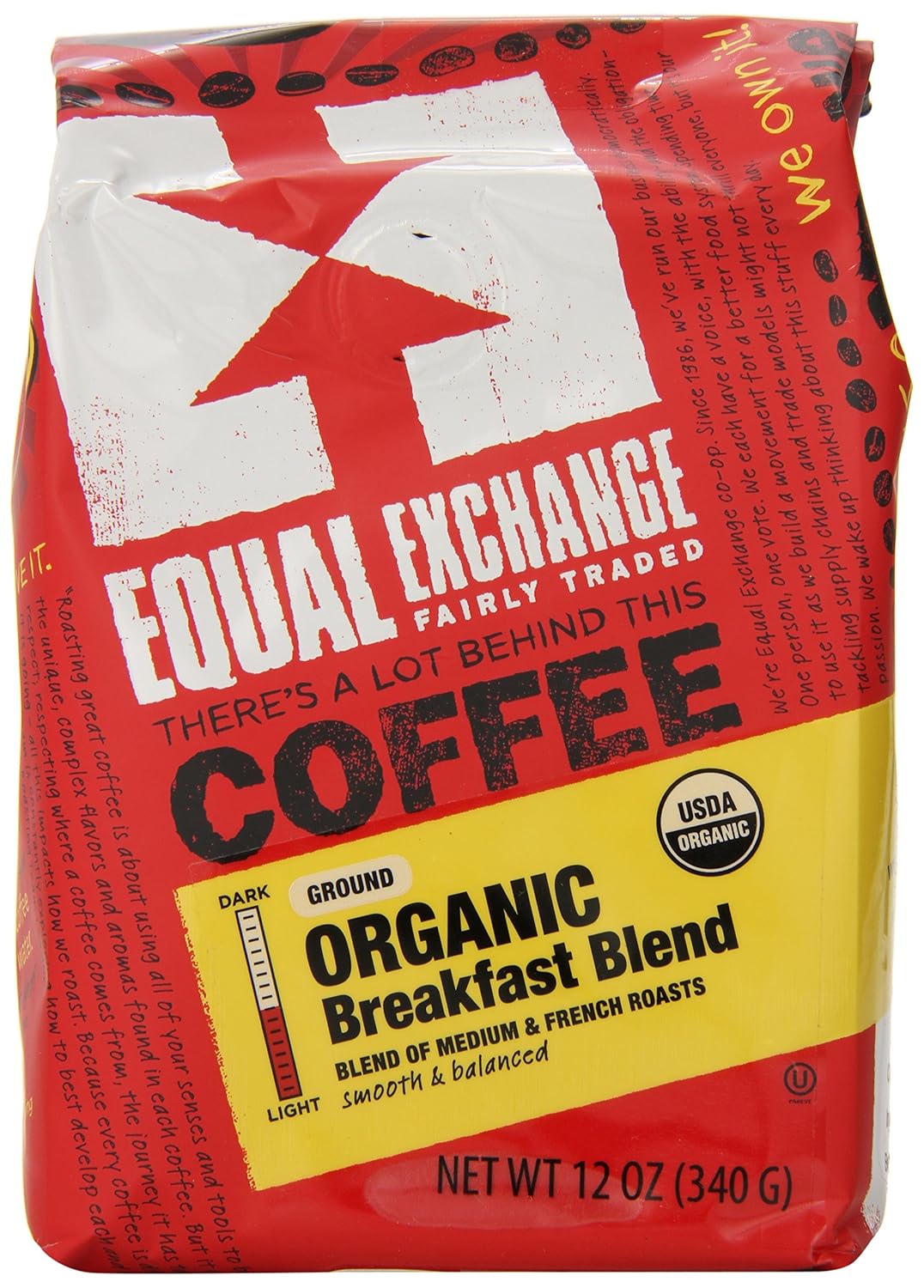 • The Equal Exchange Organic Coffee, Breakfast Blend, Ground, 12-Ounce Bag is a