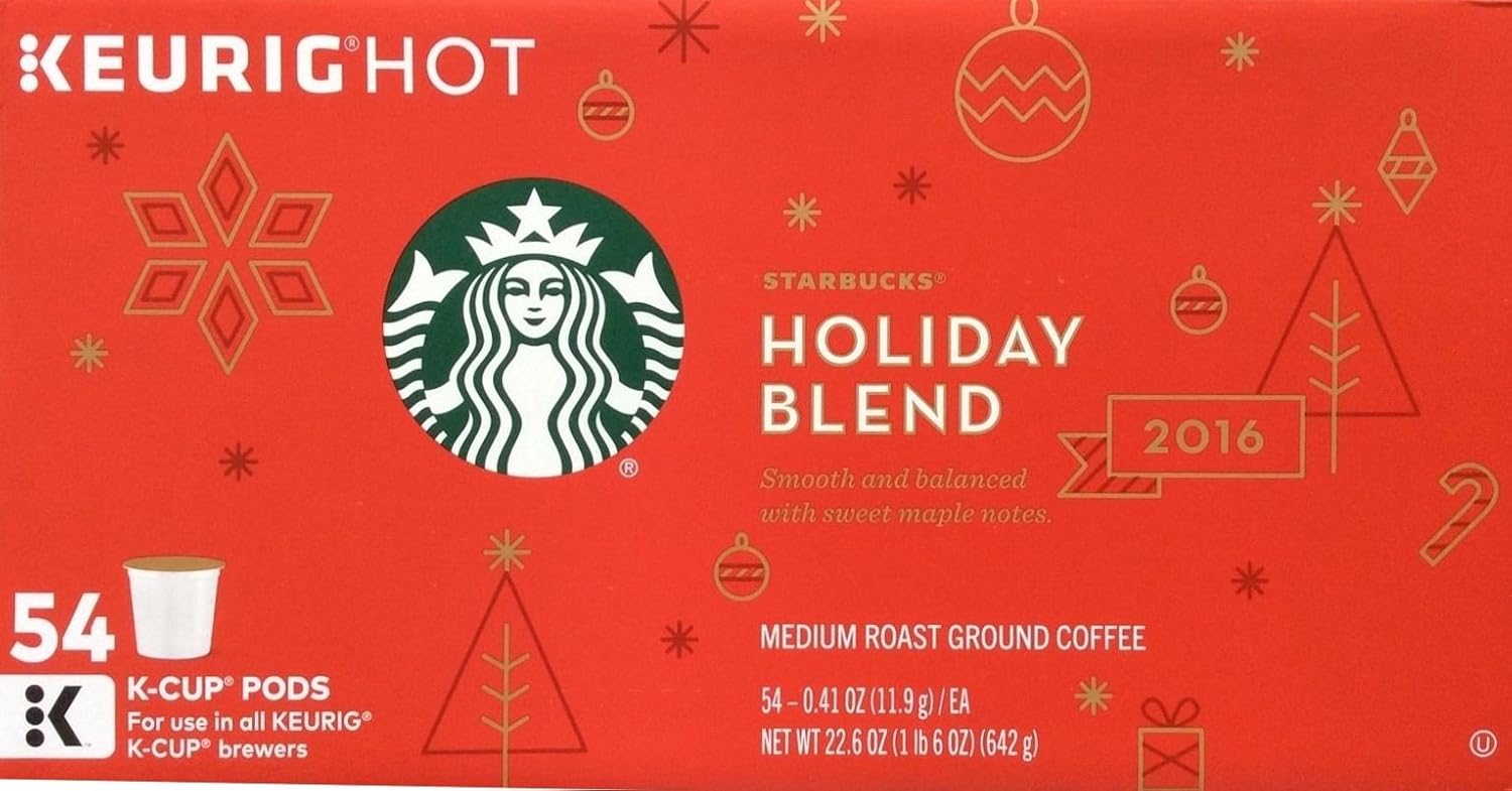 • The Starbucks Holiday Blend 2016 Limited Edition K-Cups, 54 Count is a