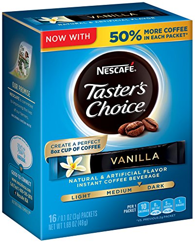 • The Nescafe Taster's Choice Instant Coffee Beverage, Vanilla (Pack of 8) is a