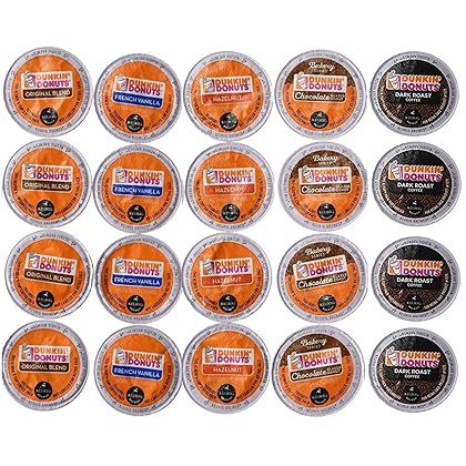 • The 20 Count - Dunkin Donut Coffee Variety K Cups for Keurig K-Cup Brewers and 2.0 Brewers - Original Blend, Hazelnut, French Vanilla, Chocolate Glazed Donut and Dark Roast is a