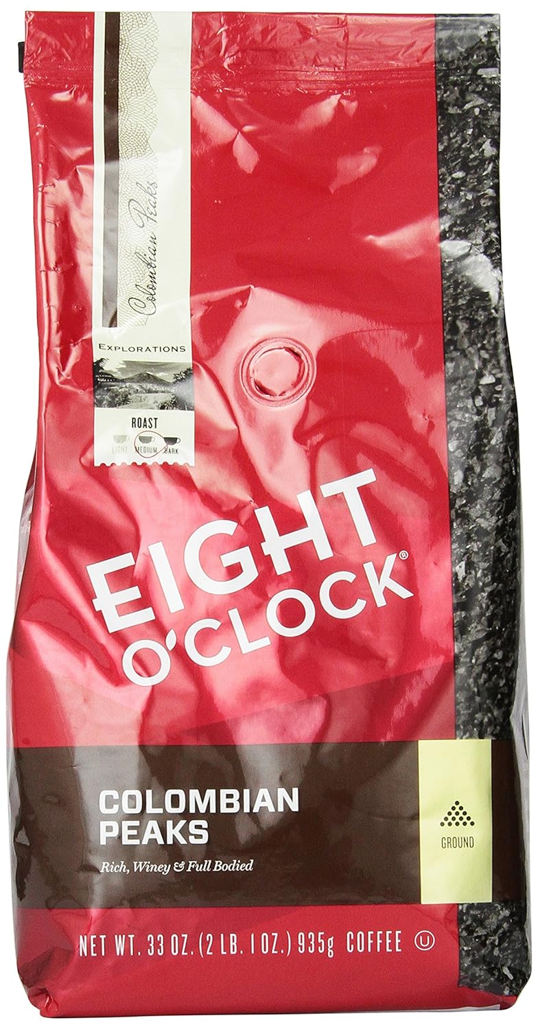 • The Eight O'Clock Colombian Peaks Ground Coffee, 33-Ounce Bag is a
