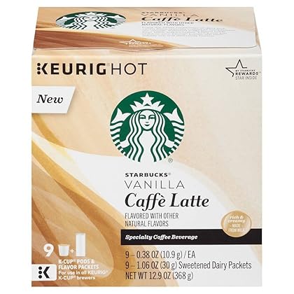 • The Starbucks Vanilla Caffe Latte K-cups - 9 count is a