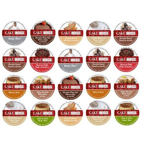 • The 20-count K-cup for Keurig Brewers Coffee Variety Pack Featuring Cake Boss® Coffee Sampler Cups Including Hazelnut Biscotti, Raspberry Truffle, Italian Rum Cake, Vanilla Buttercream, Chocolate Canoli, Chocolate Fudge Cake, and Dulce de Leche Flavored Cups is a