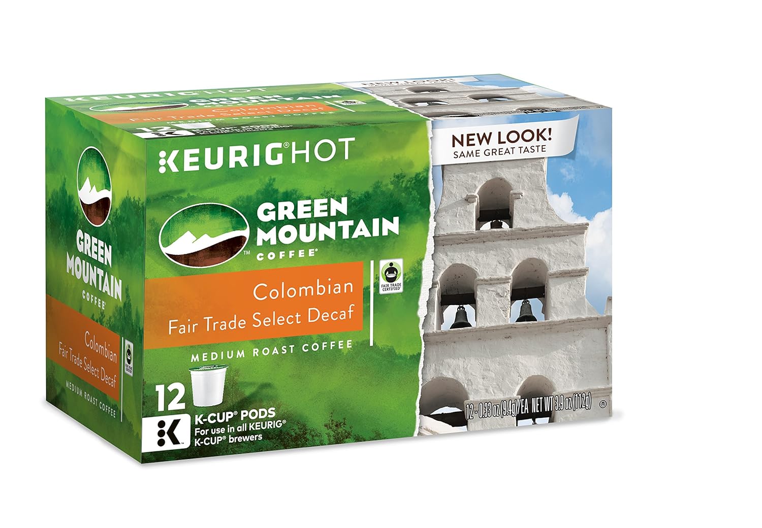 • The Green Mountain Coffee Colombian Fair Trade Select Decaf Keurig K-Cups Coffee, 12 Count is a