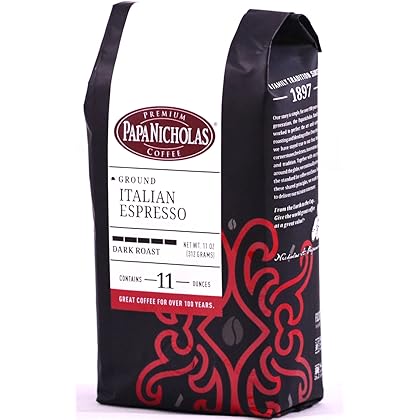 • The PapaNicholas Coffee Ground, Italian Espresso, 11 Ounce is a