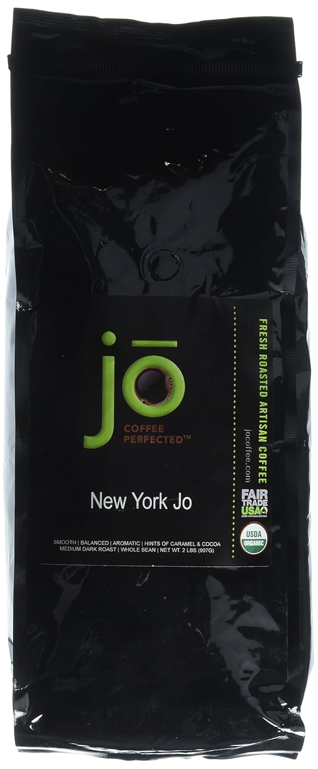 NEW YORK JO: 2 lb, Medium Dark Roast, Whole Coffee Arabica Beans, USDA Certified Organic, NON-GMO, Fair Trade Certified, Signature House Blend, Gourmet Coffee from the Jo Coffee Collection best Coffee
