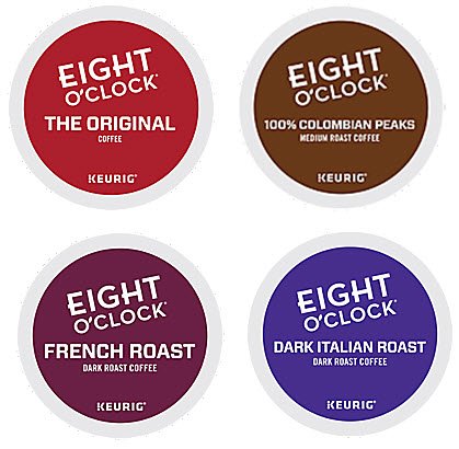 A blend of coffees with a velvety cream and persistent aroma. Aromas of honey and almonds for a mild and creamy espresso. Enjoy this blend as part of your everyday coffee ritual.At Green Mountain Coffee, a 'good' quality coffee just isn't good enough. We travel the globe looking for only the finest beans—the top 10% in the world—and taste them at the source to ensure they meet our standards.Some coffees can set the tone for a quiet moment of reflection. Others are an invitation to enjoy something sweet. No matter how coffee inspires you, we have the perfect varieties to satisfy your every taste, every time.the Eight O'Clock K-Cup Coffee Variety Pack 48ct Original, French Roast, Colombian Peaks, Dark Italian Roast Sampler - Bundle of 4 Flavors Since 2001, Green Mountain Coffee has become one of the leading roasters of Fair Trade coffee. We're also involved in global and local efforts to continually enhance the living conditions of our growers and their families.Whether you enjoy the brightness of a lighter coffee or favor a more full-bodied brew, we’ve perfected each roast in our extensive collection.From subtle spices to rich desserts, we have an assortment of heartwarming flavors to enjoy in a quiet moment or in the company of friends.Engaging and nuanced, our decaf coffee emphasizes the bean's natural flavor and vibrant aromatics for a well-brewed cup that's right for any occasion.These selections evoke and enhance the best aspects of each season, so you can enjoy your favorite flavors from the heart of the summer to the height of the holiday.Eight O'Clock K-Cup Coffee Variety Pack 48ct Original, French Roast, Colombian Peaks, Dark Italian Roast Sampler - Bundle of 4 Flavors is best for youEight O'Clock Dark Italian Roasted Coffee Cups, 12 count, offer quick and convenient coffee-making when used with the Keurig K-Cup Brewing System. These Eight O'Clock Coffee K-Cups contain a 100 percent Arabica coffee blend. This European dark coffee features a full-bodied flavor balanced with chocolate overtones. Eight O'Clock K-Cups are made with the finest selected beans that are roasted, ground and measured to exacting specifications. The Keurig K-Cup Brewing System is designed to offer a highly optimized brewing environment that is easy to use with these Eight O'Clock Coffee K-Cups. Eight O'Clock Original Medium Roast K Cups Coffee is a bright, 100 percent Arabica roast, offering sweet and fruity hints and a well-balanced flavor. These Eight O'Clock Coffee K Cups, 18 count, are tasty for any occasion, from your morning cup to a dinner party with friends. Use this Medium Roast Coffee in the Keurig K-Cup Brewing System for a quick and flavorful cup any time of day. The beans in Eight O'Clock Original Medium Roast K Cups Coffee have been selected, roasted, ground and measured to exacting specifications. The Keurig K-Cup Brewing System provides the best brewing environment for these Eight O'Clock Coffee K Cups, 12 count. Eight O'Clock Colombian Coffee K-Cups are pre-measured packets for use with the Keurig K-Cup brewing system. This 12 count pack of Eight O'Clock Coffee K-Cups features a full-bodied Arabica coffee with a lingering sweet taste and a rich aroma. Once harvested from Colombian volcanic soil, an exacting process of bean selection, roasting and grinding is used to produce the optimal blend for these Colombian Coffee K-Cups.