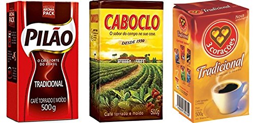 Pilão Coffee + Caboclo Coffee + 3 Corações Coffee 17.6oz | Café Pilão + Café Bustelo + Café 3 Corações 500g best Coffee