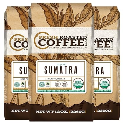 • The Fair Trade Organic Sumatra Coffee, 12-Ounce Bags (Pack of 3) , Whole Bean, Fresh Roasted Coffee LLC is a