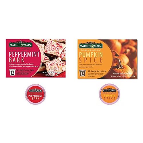 Market & Main Fall Flavors K-Cups (24 pack) 12 peppermint Bark, 12 Pumpkin Spice best Coffee