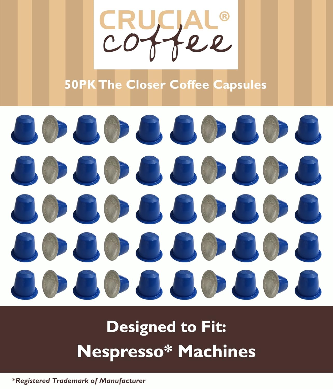50 Count High Performance Replacement Coffee Capsules for Use in Most Nespresso Machines, The Closer is Designed & Engineered by Crucial Coffee best Coffee