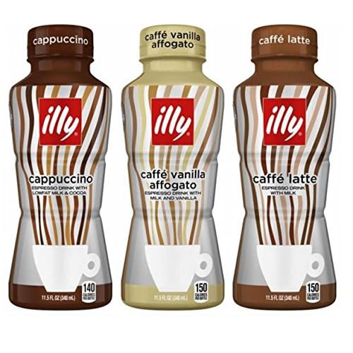 illy issimo Latte Variety Pack 11.5 oz Bottles - Pack of 12 is best for youilly issimo Variety Pack offers a range of ready-to-drink coffee made with unique blend of 100% coffee. illy issimo offers uncompromised quality and purity with portable convenience. Illy Issimo is a ready-to-drink coffee beverage made from unique blend of pure coffee, with no artificial colours, aromas, flavours or preservatives. illy issimo Variety comes in a 11.5 oz bottles come in a pack of 12. Variety Pack includes three flavors: Caffe Vanilla Affogato, Cappucciono Coffee Drink, Caffe Latte