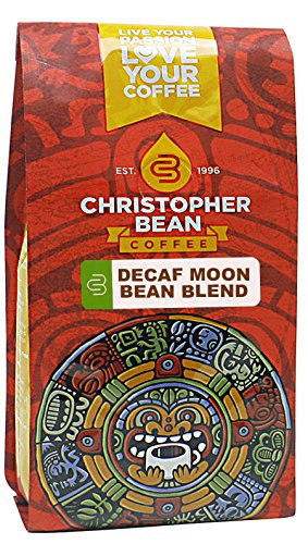 Christopher Bean Coffee Decaffeinated Whole Bean Ground Coffee, Decaf Moon Bean Blend, 12 Ounce is best for youThis is equally exciting as its caffeinated cousin. An intense blend of central American and Indonesian coffees, this dark and hearty blend is so smooth and sweet with a creamy rich flavor, that you might find yourself baying at the moon. It also makes a fine choice for decaf espresso. Always fresh roasted never pulled from stock.