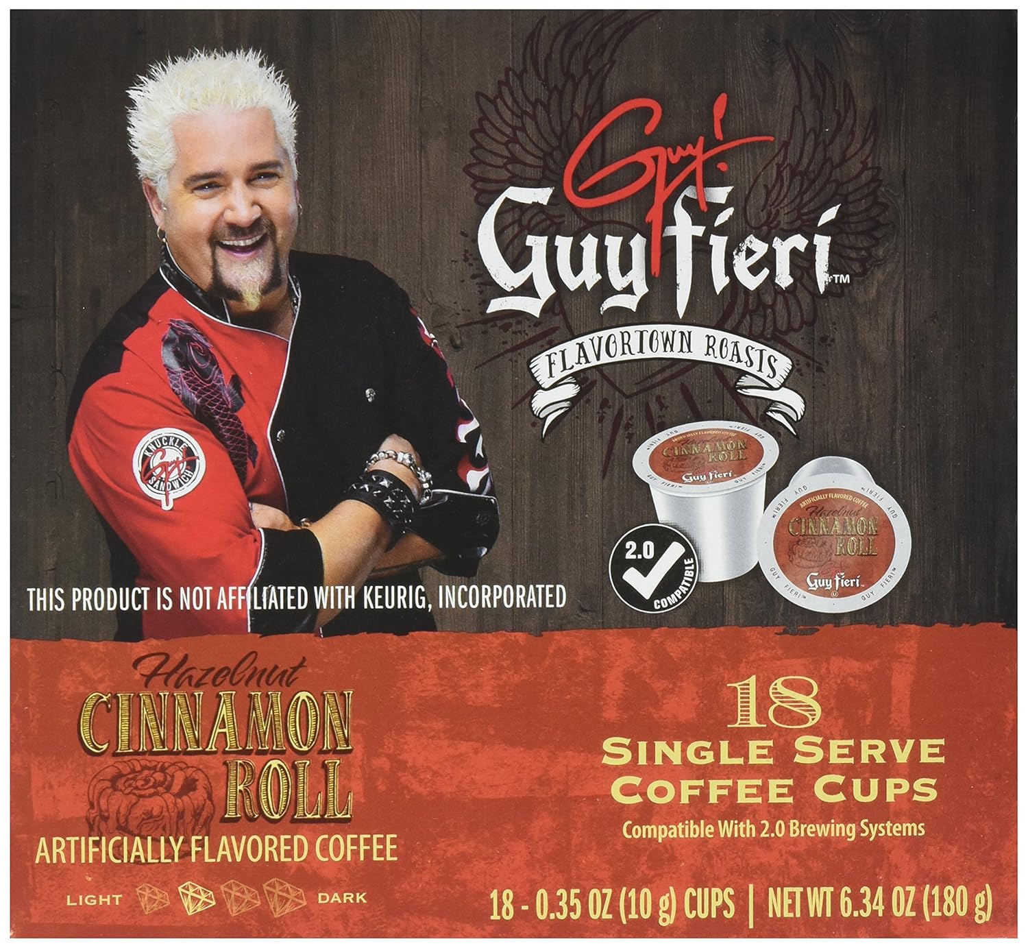 Guy Fieri Flavortown Roasts Medium Roast Coffee Cup, Hazelnut Cinnamon Roll, 18 Count is best for youFlavor:Hazelnut Cinnamon Roll Toasted hazelnut and big cinnamon flavors make this brew dessert in a mug.