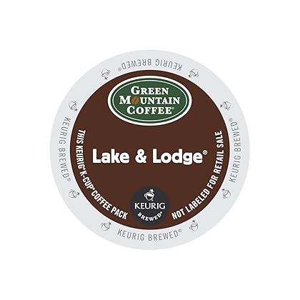 Green Mountain Coffee Lake and Lodge K-Cups 96ct Dark is best for youGreen Mountain Lake and Lodge K-Cup Pods puts the feeling of a fresh brew of dark coffee sipped on a cabin porch right into your coffee mug. This single serve coffee is rich and dark with a reasonable caffeine buzz. Enjoy Green Mountain Lake and Lodge single cup dark coffee on Sunday morning or every day. The careful balance of acidity and sweetness gives this dark coffee a distinct character perfect for those who like the rich heavy flavors of dark roast coffee.
