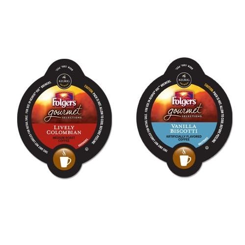 32 Count - Folgers Gourmet Selections Lively Colombian & Vanilla Biscotti Coffee Vue Cup For Keurig Vue Brewers is best for youFolgers Gourmet Selections Lively Colombian Coffee Vue CupThe distinctively rich and full-bodied taste of 100% Colombian beans will help you enjoy your morning.Vanilla Biscotti Coffee. Hints of freshly-baked vanilla biscotti flavor paired with gourmet coffee make Folgers Gourmet Selections® Vanilla Biscotti Coffee the most delicious break of the day. ©/™/® Folgers Gourmet Selections is a trademark of The Folger Coffee Company.