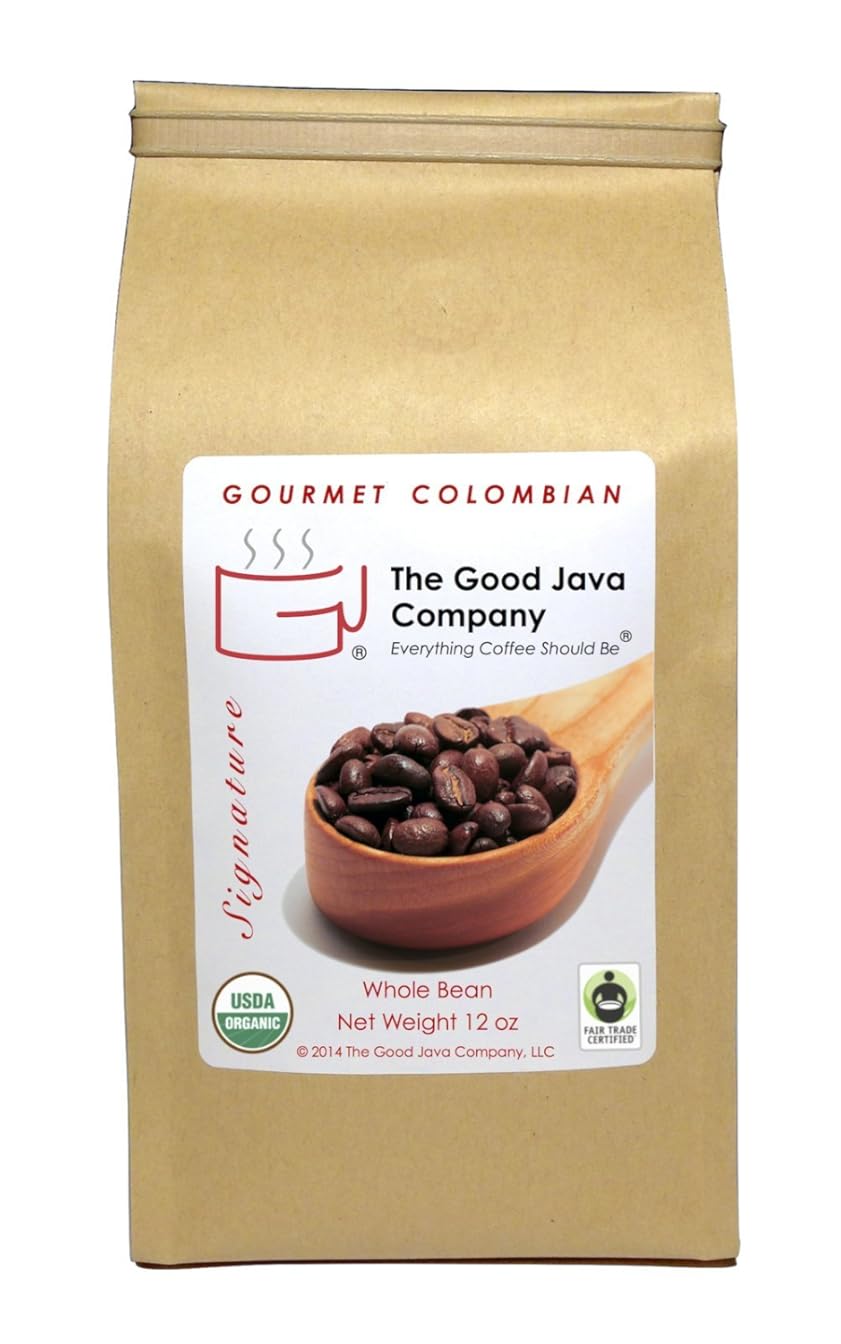 The Good Java Company - Gourmet USDA Organic Fair Trade Colombian Small Batch Roasted Coffee (Whole Bean) Net Weight 12oz is best for youWith our demand for premium quality, The Good Java Company sets the standard with its Colombian coffee, which is: 100% Arabica Beans 100% Pure Colombian USDA Certified Organic Fair Trade Certified As you connect with its inviting aroma and smooth, full-bodied flavor, you will feel invigorated, as you enjoy the best in coffee satisfaction! Whether you are preparing to charge the hill of success or unwind at the end of the day, any time is a good time for The Good Java!