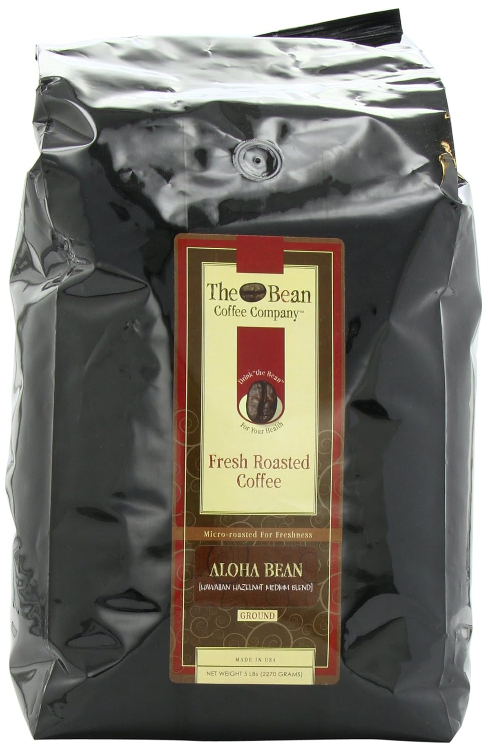 The Bean Coffee Company, Aloha Bean (Hawaiian Hazelnut) Ground Coffee, 5-Pound Bags is best for youThe bean coffee company's hawaiian hazlenut coffee is fresh- roasted weekly for the best all around brew. this medium roast is rich in aroma and has a complex, bold flavor accented by natural hazlenut. the taste and aroma take you away to the islands. like all coffees from the bean coffee company, this 100% arabica coffee was hand roasted in small batches and packaged at the peak of its cycle to preserve its natural flavors and fresh-roasted quality. for information or customer service concerning this coffee, or any of our great single origin and blended coffees, contact the bean coffee company at customerservice@thebeancoffeecompany.com. it's all about the bean!