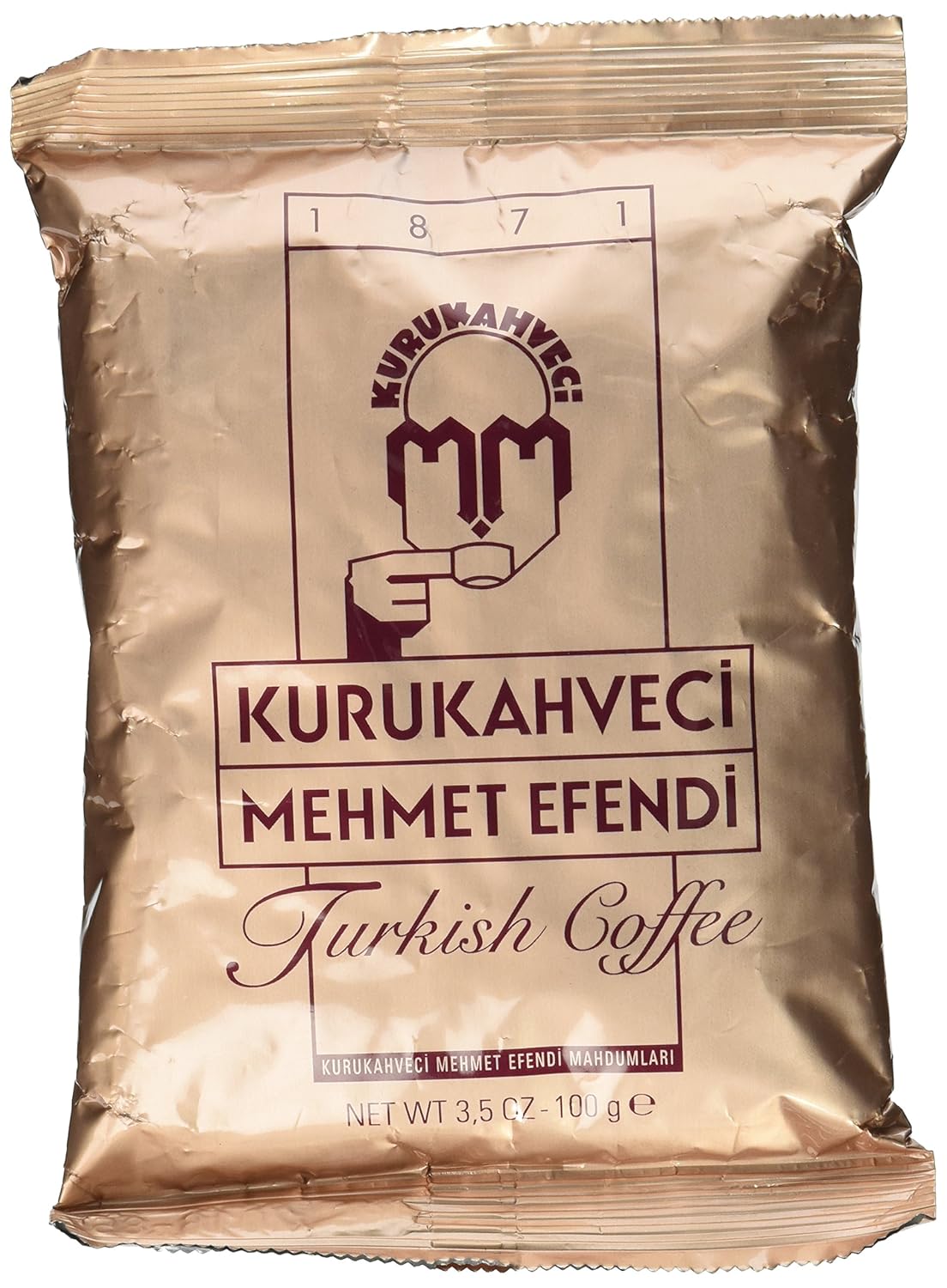 TURKISH ROASTED - GROUND COFFEE BY KURUKAHVECI MEHMET EFENDI is best for youAUTENTIC OTTOMAN'S IBRIK / CEZVE METHOD genuine TURKISH GROUND COFFEE ROASTED 2 x 100 GR/ 3,52 OZ BY KURUKAHVECI MEHMET EFENDI, NESVE BEST QUALITY, IN SPECIAL PACK Turkish Ibrik style coffee or Cezve brewing is the traditional way of preparing coffee in middle eastern countries and north Africa. Usually the coffee is brewed with the addition of cardoman and suger to enhance the very strong liquor. RECOMMENDATION IS: Turkish Grind Turkish grind is roasted coffee beans grinded to a fine powder, which is then used in a special Turkish coffee pot. Turkish coffee is thick and has a foam top; the coffee is usually served with a glass of water to help freshen the mouth so you can enjoy the fuller taste before sipping your coffee. Turkish coffee is also traditional served with Turkish delights. You can find TURKISH COFFEE GRINDERS, COFFEE-POT(IBRIK/CEZVE) AND TURKISH COFFEE CUP in my store.