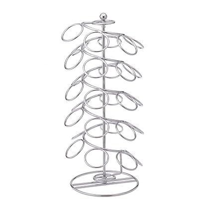 K-Cup Coffee Pod Rack, Holds 28-PC is best for youThe Coffee Pod Rack for K-Cups elegantly displays all your favorite K-Cups. The lazy susan base rotates 360-degree, making it extremely easy to find and select your favorite K-Cup flavor.Keep your favorite K-Cups organized and accessible, and keep the countertops neat and tidy.This handy accessory holds 28 K-Cups in individual pod holders, and has a sleek chrome finish that goes with any style kitchen decor.