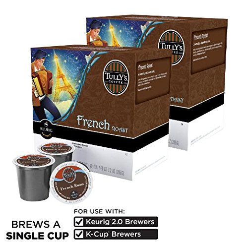 Tully's French Roast K-cups 160 K-cups (160) is best for youSize:160 French Roast 160 K-Cup® portion packs: True to a traditional French Roast, this full-bodied coffee reveals deep roasted aromas, and smoky flavors reminiscent of a quaint Parisian café. The sophisticated finish highlights the coffee’s sweet side and begs to be shared with a rich and chocolaty pastry.