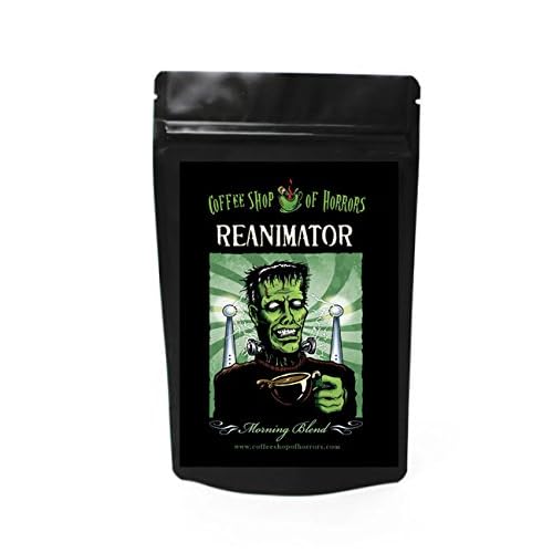 Coffee Shop of Horrors Morning Blend - Reanimator (8oz bag) is best for youNeed a jolt to wake you up in the morning? Try our Reanimator Morning Blend. We've chosen medium-roasted South American beans for that bright snap that will open your eyes and dark-roasted Indonesian beans to provide that full body to bring a smile to your lips. Sadly, you won't get crashing thunder and lightning every time you brew a cup, but by blending these beans, Reanimator will get you a full, rich flavored coffee to get you going in the mornings. Just look at how happy it makes Franky.