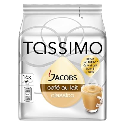 Tassimo Jacobs Café au Lait, Coffee Capsules, Milk Coffee, Roasted Ground Coffee, 16 T-Discs / Servings is best for youImported from Germany