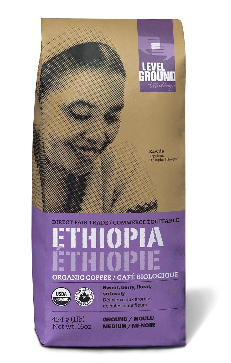 Ethiopian Certified Organic Fair Trade Medium Roast Ground Coffee 1 lb 454 g is best for youBerries and honey provide a bright, playful entry, with smooth center notes, and a lingering cocoa finish. From small farmers in Ethiopia, it is certified organic and fairly traded.Purchase of this fair trade coffee helps to- create opportunities for small scale producers that live in remote, rural areas- pay a fair price to farmers and producers- invest in improvements in the farmers’ communities- support sustainable environmental practices- promote independence, education and positive work conditionsProcessed and packaged in Canada, in a compostable bag, designed to keep coffee fresh.