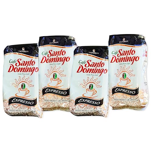Santo Domingo Espresso - Ground Dominican Coffee 4 Bags / Pounds Pack is best for youGENERAL DESCRIPTION OF THE PRODUCT: This product page is for: • 4 pounds - 4 bags (1 pound each bag) of The most loved coffee from Dominican Republic ( garanteed ) / El cafe Dominicano mas amado ( garantizado ): 'CAFE SANTO DOMINGO'. This edition on this listing is espresso ground coffee; especially for espresso coffee machines ( this coffee has the finest grind ). This special coffee is a rich-flavored, dark roasted, top quality coffee; the pride and joy of Dominicans !!! it's recognized worldwide for its tasty flavor and unique aroma, considered one of the best coffees in Latin America and the world. Here in Dominican Republic the daily routine starts with the aroma of 'SANTO DOMINGO COFFEE' every morning... doesn't matter where you are; in the country side, at the city, everywhere... that's what helps us have a great day!!! You will receive a top quality product packed with its ORIGINAL, UNTOUCHED AND SEALED PACKAGE DIRECTLY FROM THE MANUFACTURING COMPANY: 'INDUBAN' ( almost 70 years producing the coffee ). We really invite you to be part of our pride... If you have tasted it you know is amazing and if you haven't tried this excellent-top quality coffee, we recommend you to because we're sure you won't regret and very probably you will be ordering again soon !