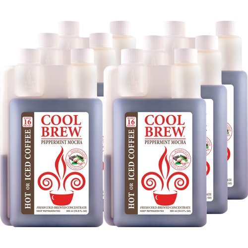 Cool Brew Fresh Coffee Concentrate - Peppermint Mocha 6x500ml - Make Hot Coffee or Iced Coffee - Enough for 100 drinks is best for youCoolBrew® is a fresh gourmet coffee concentrate. Using our unique Cold Brewing methods we extract the full flavor from the finest Arabica coffee beans, without the bitter acids. Preparing a delicious iced coffee or a fresh hot coffee has never been easier. Each bottle makes 16 delicious beverages. Always consistent with our unique measuring device. CoolBrew is a coffeehouse in every bottle. For further information visit coolbrew.com For recipes, visit coolbrew.com/recipes