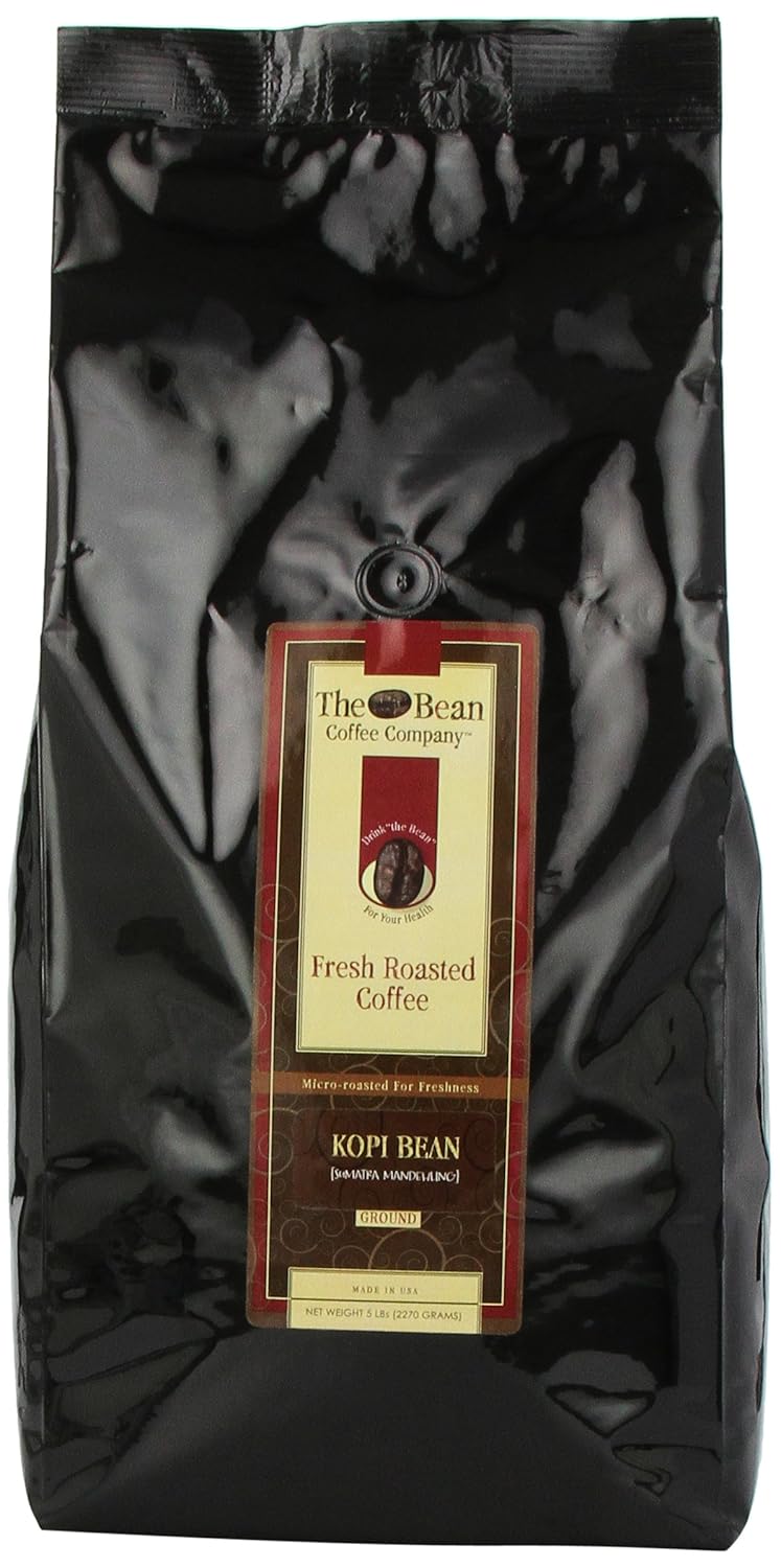 The Bean Coffee Company, Kopi Bean (Sumatra Mandheling) Ground Coffee, 5-Pound Bags is best for youThe bean coffee company's sumatra mandheling is fresh- roasted weekly for the best brew. this medium-dark roast is features a bold taste and smooth finish. like all coffees from the bean coffee company, this 100% arabica coffee was hand roasted in small batches and packaged at the peak of its cycle to preserve its natural flavors and fresh-roasted quality. for information or customer service concerning this coffee, or any of our great single origin and blended coffees, contact the bean coffee company at customerservice@thebeancoffeecompany.com. it's all about the bean!