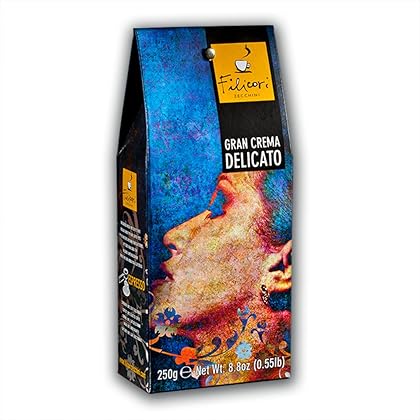 Filicori Zecchini Ground Coffee - Gran Crema Delicato for Espresso 250g (0.55lb) - Quantity of 4 is best for youFilicori Zecchini's Gran Crema Delicato is a blend of coffee beans. Its aroma is intense and delicate; to the palate, its taste is delicate, full-bodied and consistent in its smoothness. Of all descriptors, sweetness prevails but this is slightly mitigated by bitterness. The acid value is medium to low and astringency is almost totally absent. The complex and delicate aroma offers the palate interesting notes of dark chocolate, vanilla and toasted cereal, which linger at length, and it has a good level of delicacy.Filicori Zecchini's Gran Crema Delicato is available in vacuum packed sachets of 250g (0,55lb), with a special grind type for Espresso machines at home.